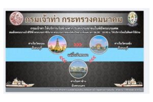 กรมเจ้าท่า กระทรวงคมนาคม ให้บริการเรือข้ามฟากฟรี เนื่องในพิธีถวายน้ำสรงพระบรมศพ สมเด็จพระนางเจ้าสิริกิติ์26 ตุลาคม 2568