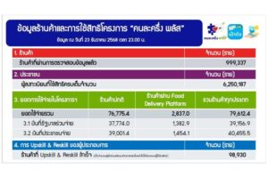 คนละครึ่งพลัสถึง 23 ธ.ค.68 เงินสะพัด 7.9 หมื่นล้านบาท ใช้สิทธิหมดแล้ว 6.2 ล้านราย ร้านค้าอัพสกิลพุ่ง 9.8 หมื่นราย24 ธันวาคม 2568