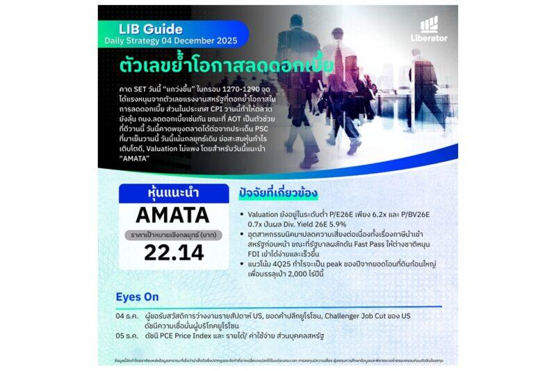 Pi Daily กระแสลดดอกเบี้ยของสหรัฐฯ เพิ่มขึ้นเรื่อยๆหลังตลาดแรงงานส่งสัญญาณอ่อนแรง ส่วนในไทยเงินเฟ้อต่ำต่อเนื่องเพิ่มโอกาสลดดอกเบี้ยเช่นกัน โดยรวมดีกับตลาดหุ้น4 ธันวาคม 2568